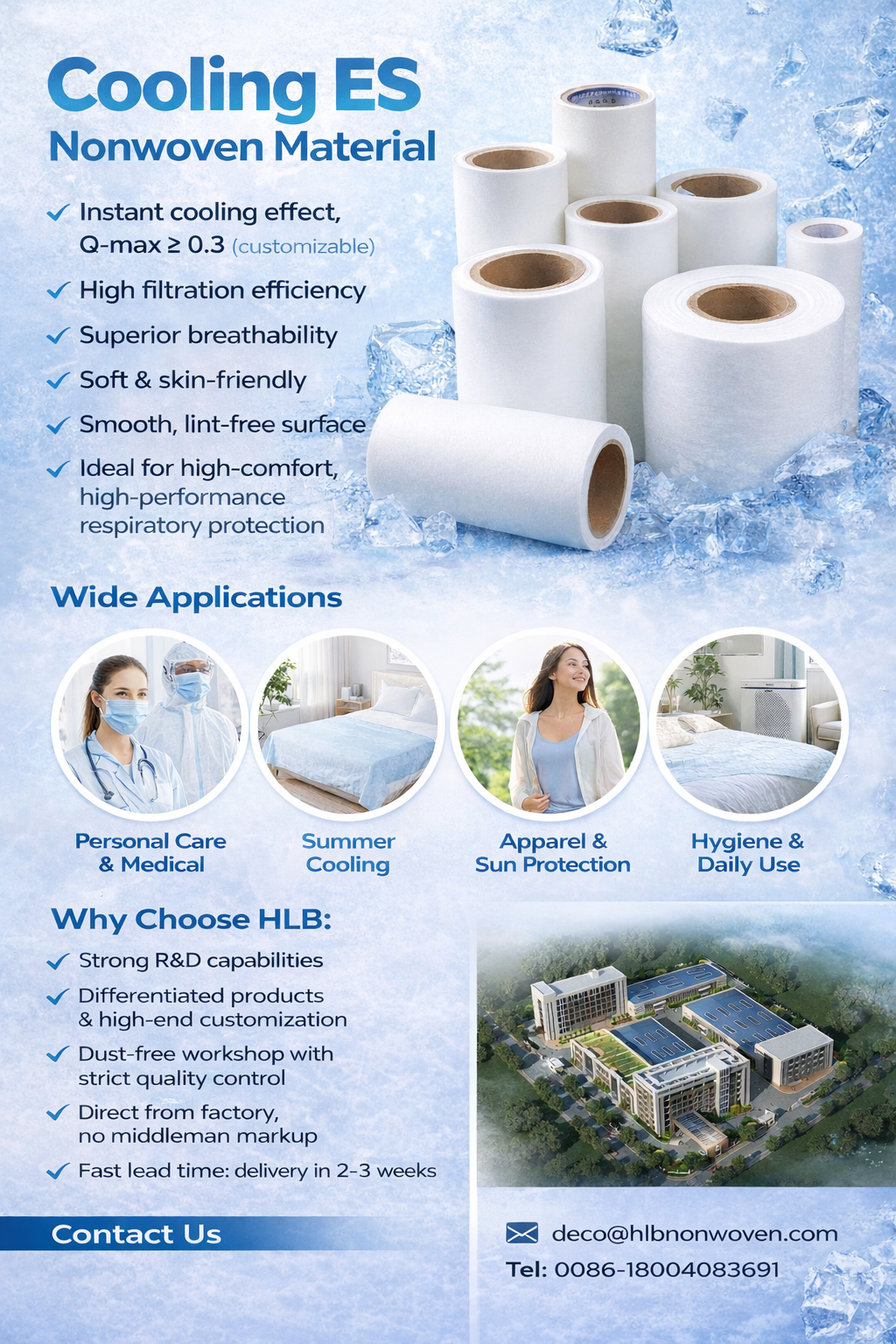 HLB Materials is a professional production of functional non-woven fabric manufacturer. We have successfully developed non-woven fabric for heat sealing packaging of desiccant, non-woven fabric for foot stickers and foot bath bags. Relying on advanced technology, excellent production equipments and rich production experience, the non-woven fabric has a new type of breathable packaging material with uniform mesh, smooth cloth surface, high mechanical strength, high temperature resistance, dust prevention, good air permeability and excellent heat sealing performance. It is not only used in drying agent packaging, but also widely used in other fields.